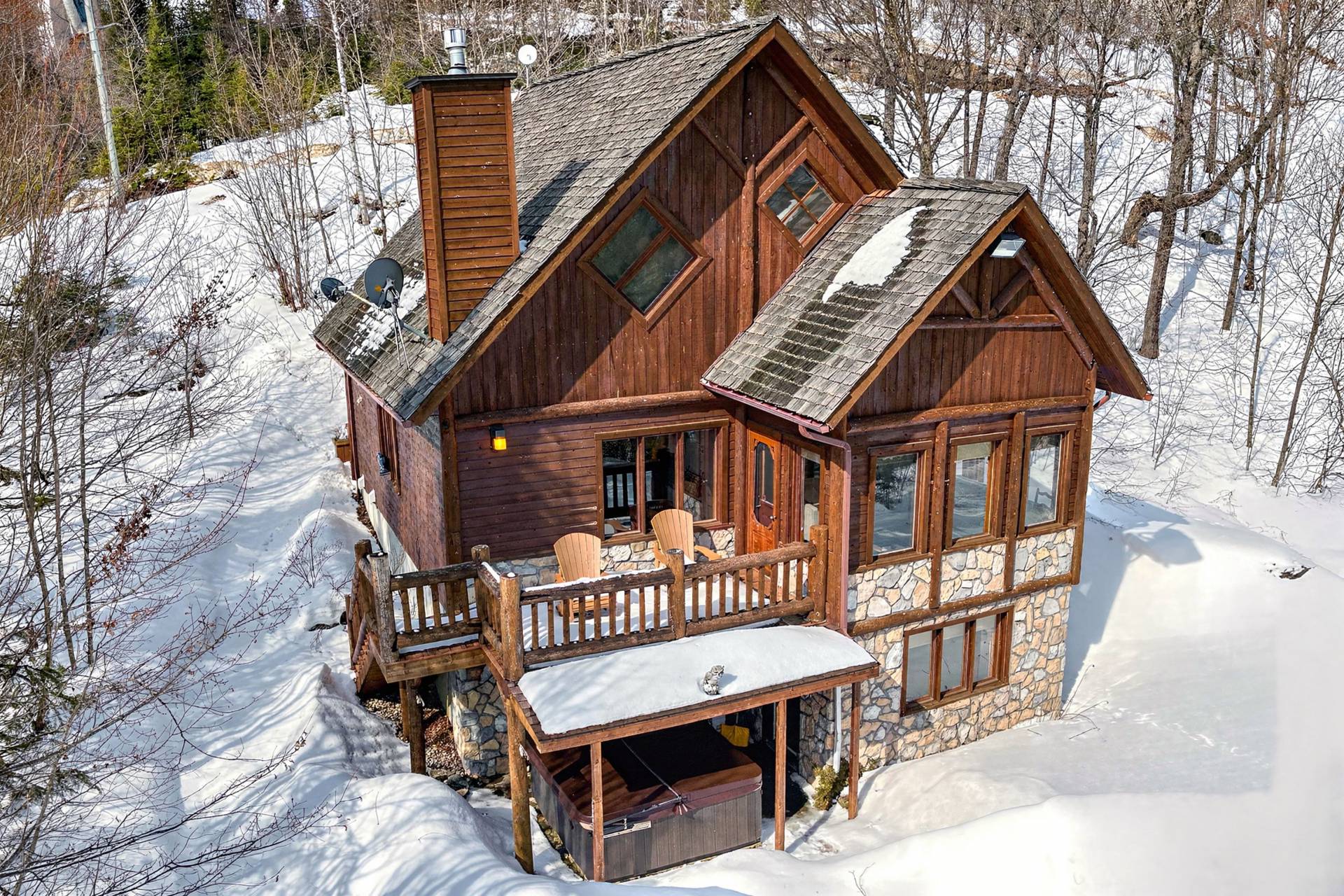 Stunning 3-bedroom chalet located on the Royal Laurentien Golf Course, just steps from the clubhouse. Ideal as a secondary residence or a short-term rental investment (active CITQ permit). Enjoy a wide range of on-site 4 season activities, including beach, swimming pool, tennis, cycling and cross-country ski, snowmobiling, golf, snowshoeing trails, and more.Conveniently located near Mont-Tremblant and only 1hour from Montreal.If you are looking for a warm and inviting getaway that offers both a change of scenery and rental income potential within a high-quality resort setting, this this property is sure to meet your expectations. A must-see!